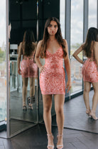 Sequin Scroll Bodycon Mini Dress with Corset Lace-Up Back