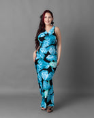 This Valencia Butterfly Open Back Maxi Dress features a romantic black and blue floral print, perfect for any occasion. The tie-up open back adds a touch of elegance and allure, making you stand out in any crowd. Experience the best of both style and comfort with this must-have maxi dress.