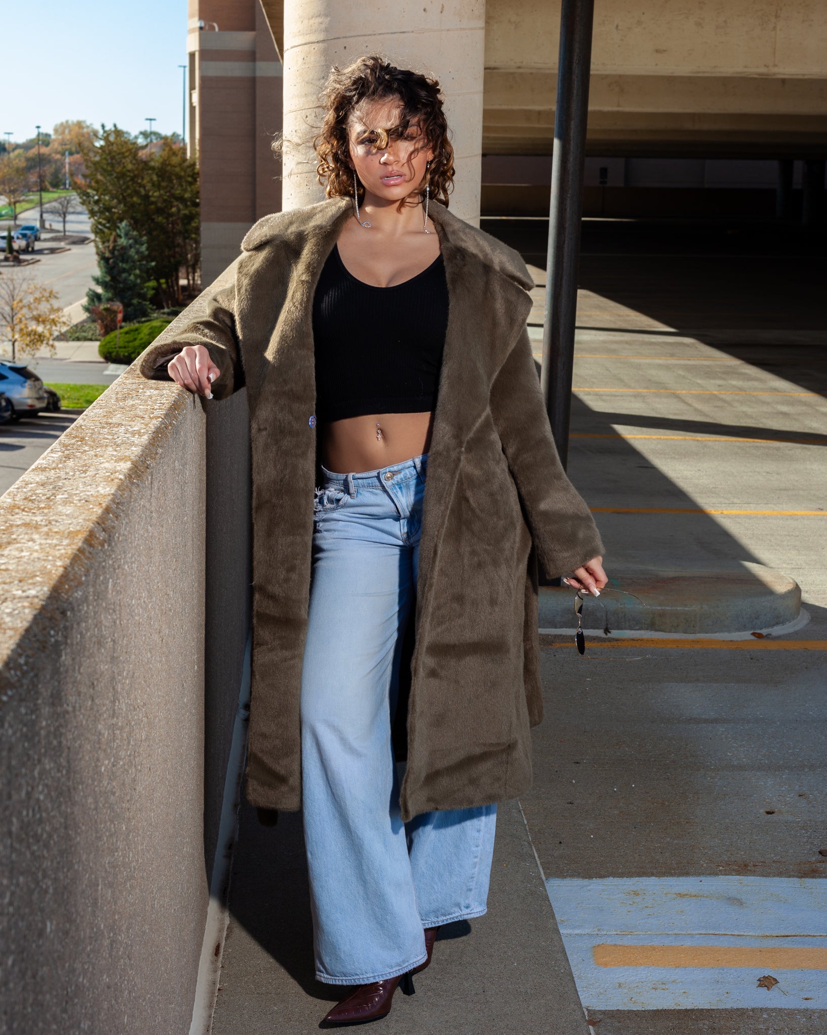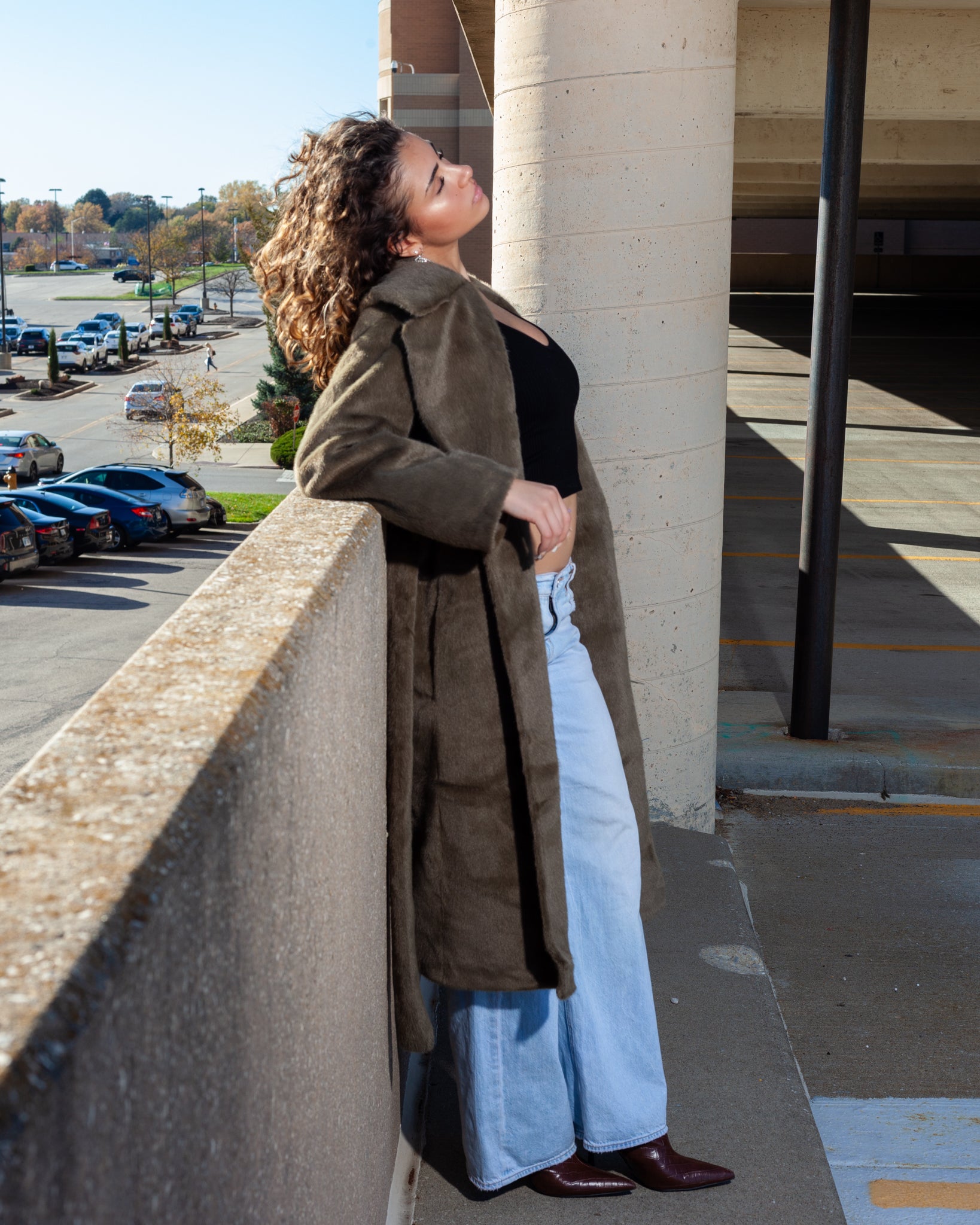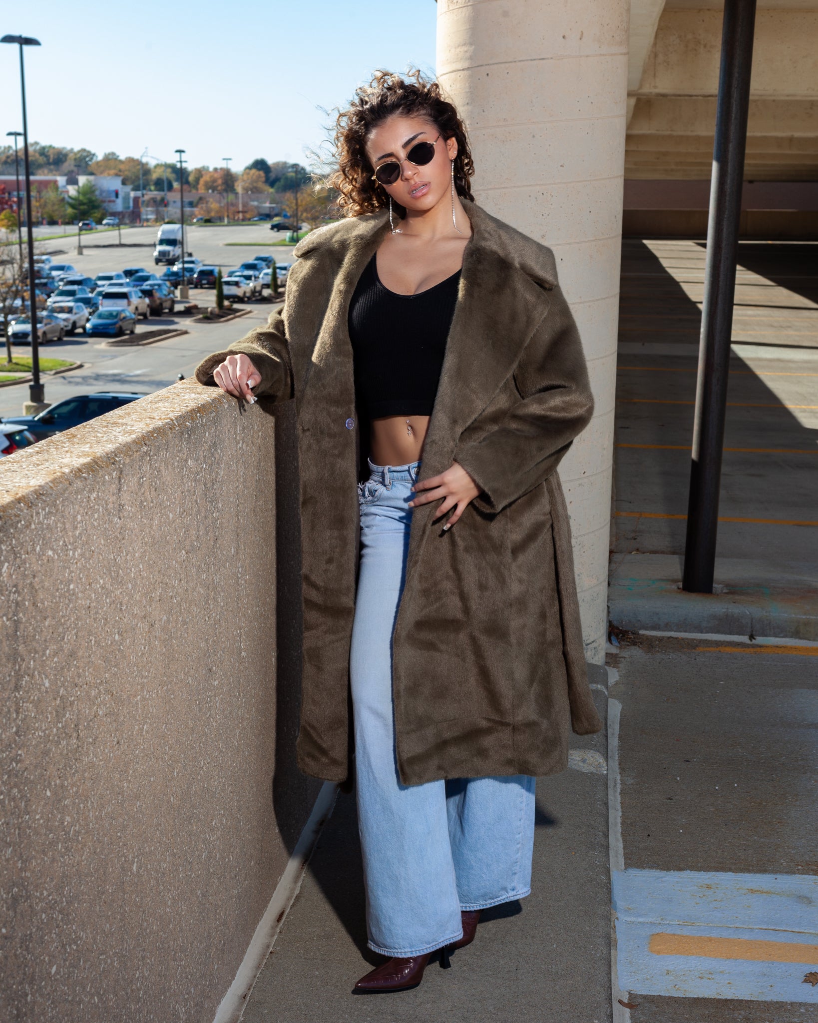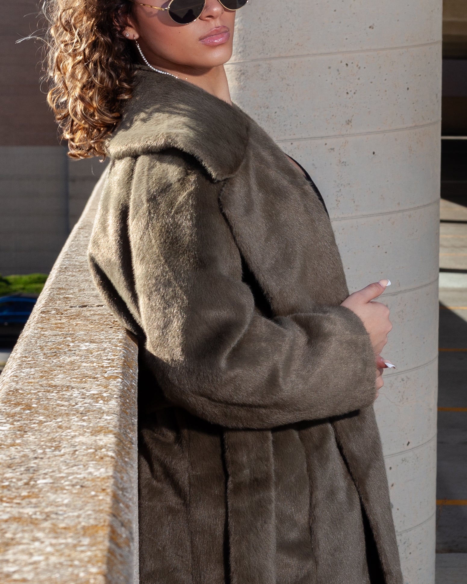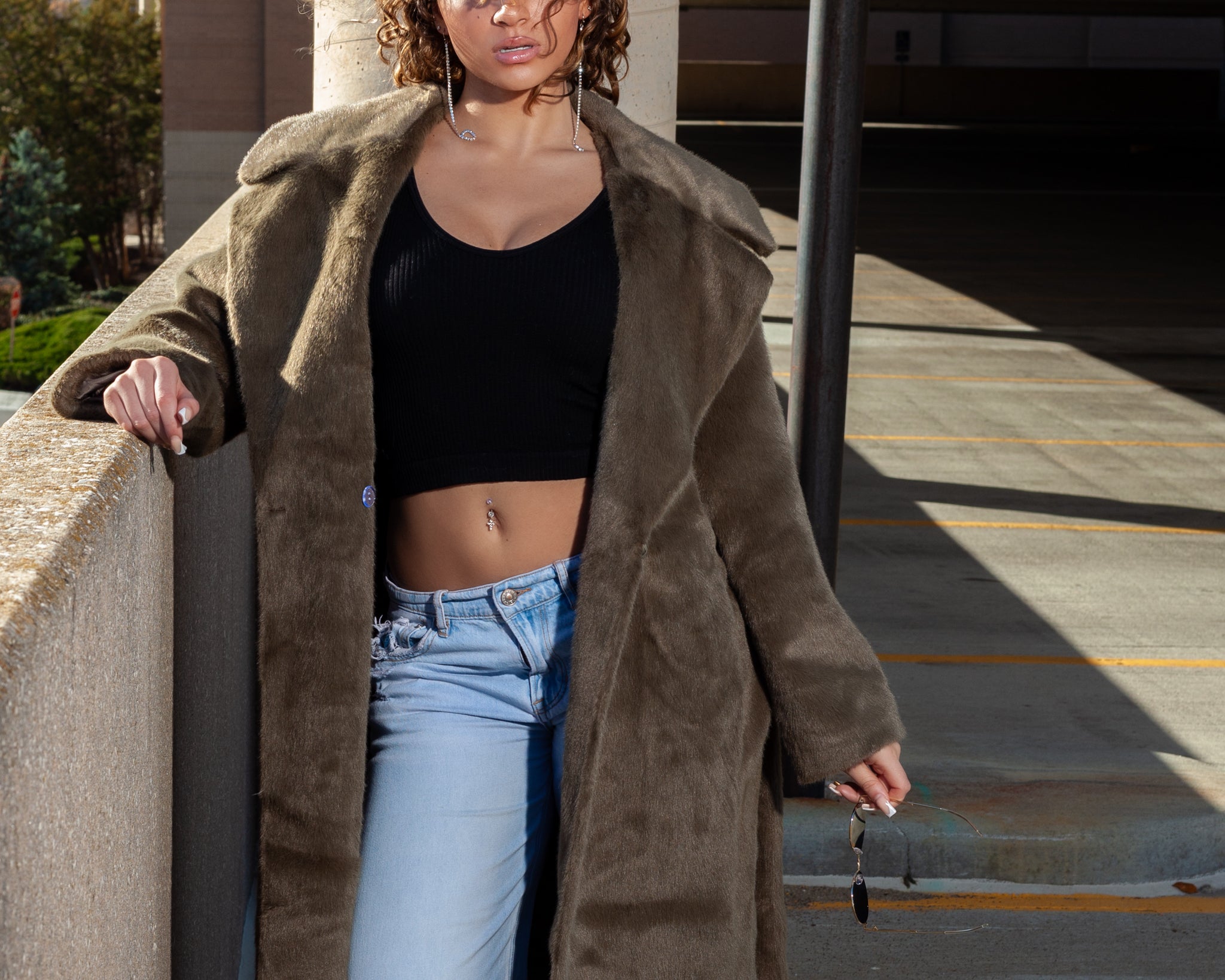 Experience luxury and warmth with our Olive Faux Fur Midi Belted Coat! This color is timeless and so chic.