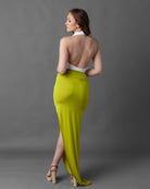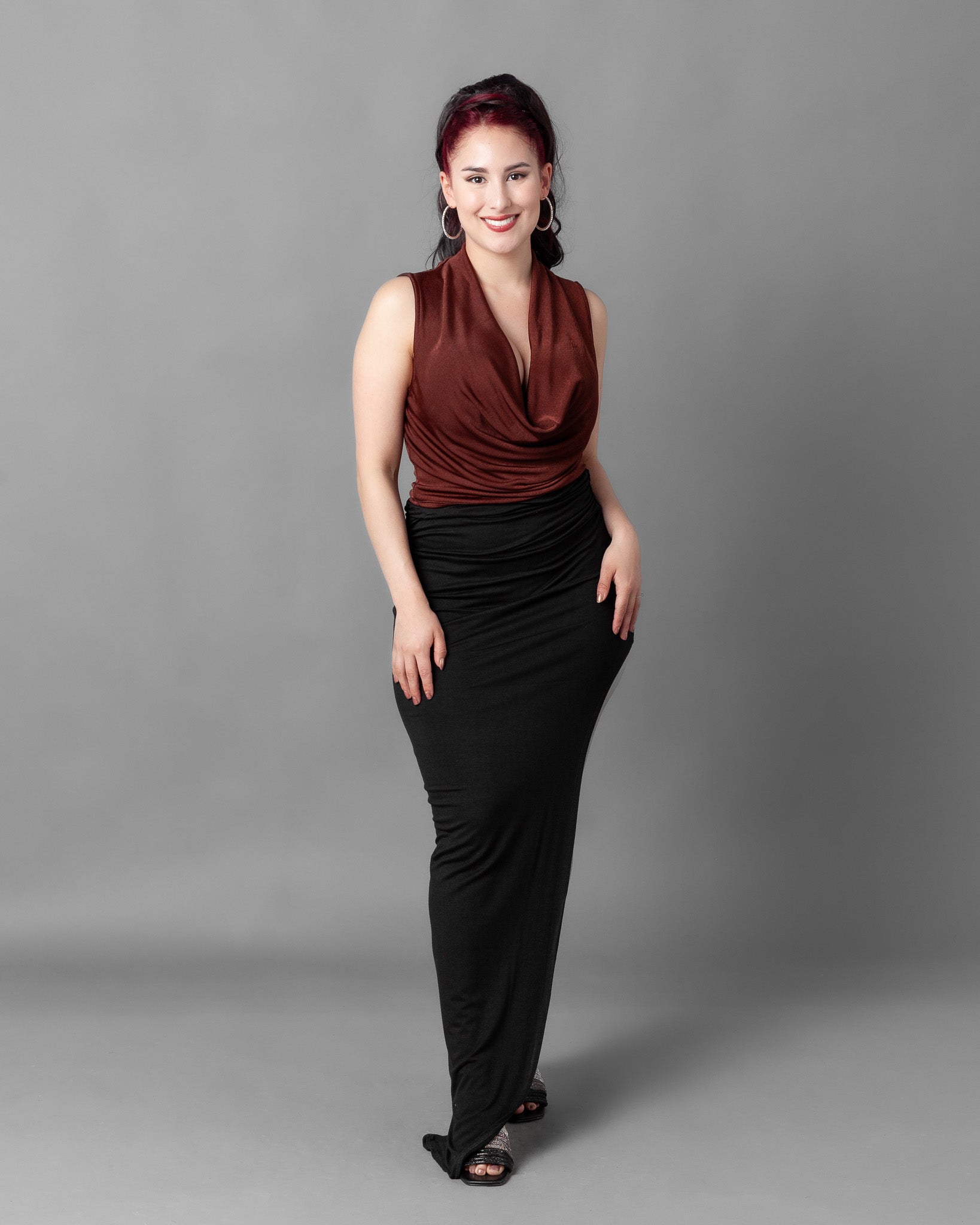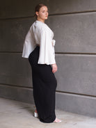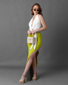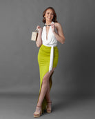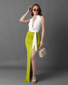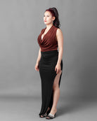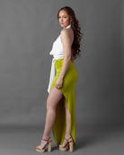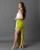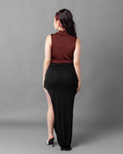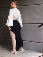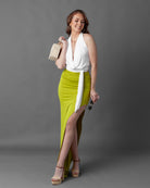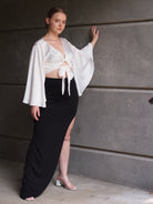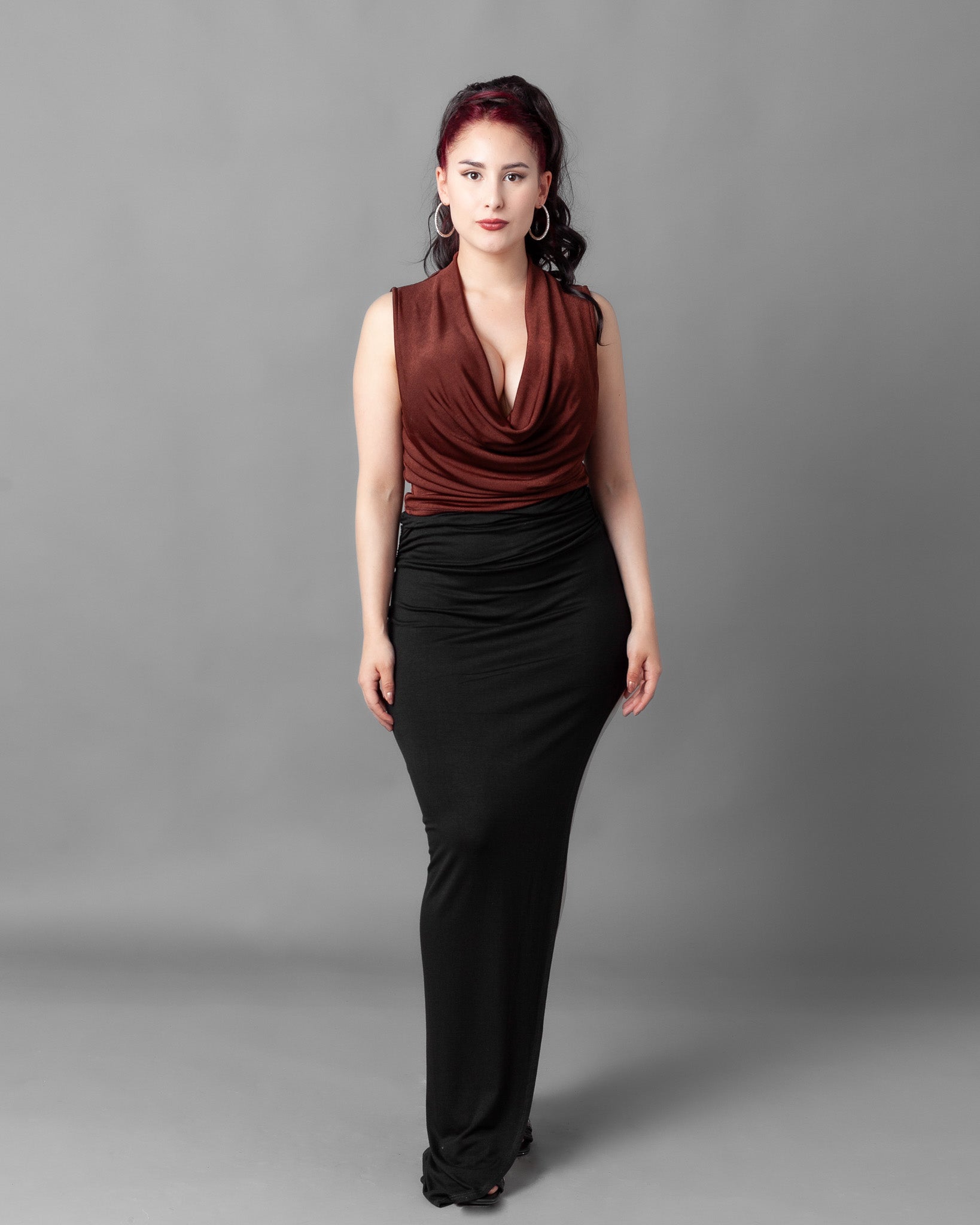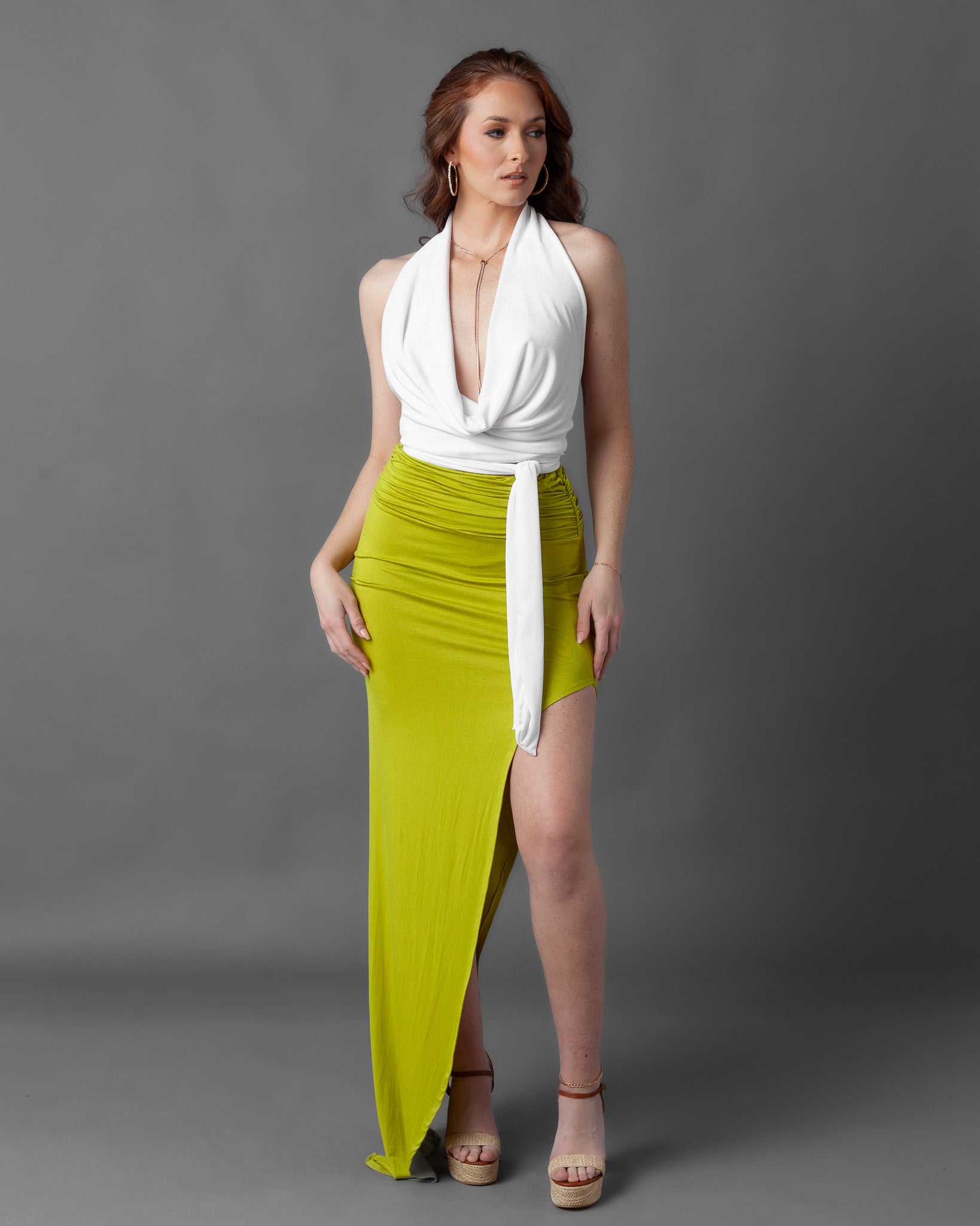 The perfect versatile summer piece has arrived. This soft jersey knit cut out high slit skirt is the perfect capsule item. There's stretch to fit your curves this can be worn as a swim cover, on vacation or to a local brunch date. It mixes in with body suits, cropped tops, swimwear or a basic tee. The fold over waistline is elastic but sewn into place so it wont move around on you.