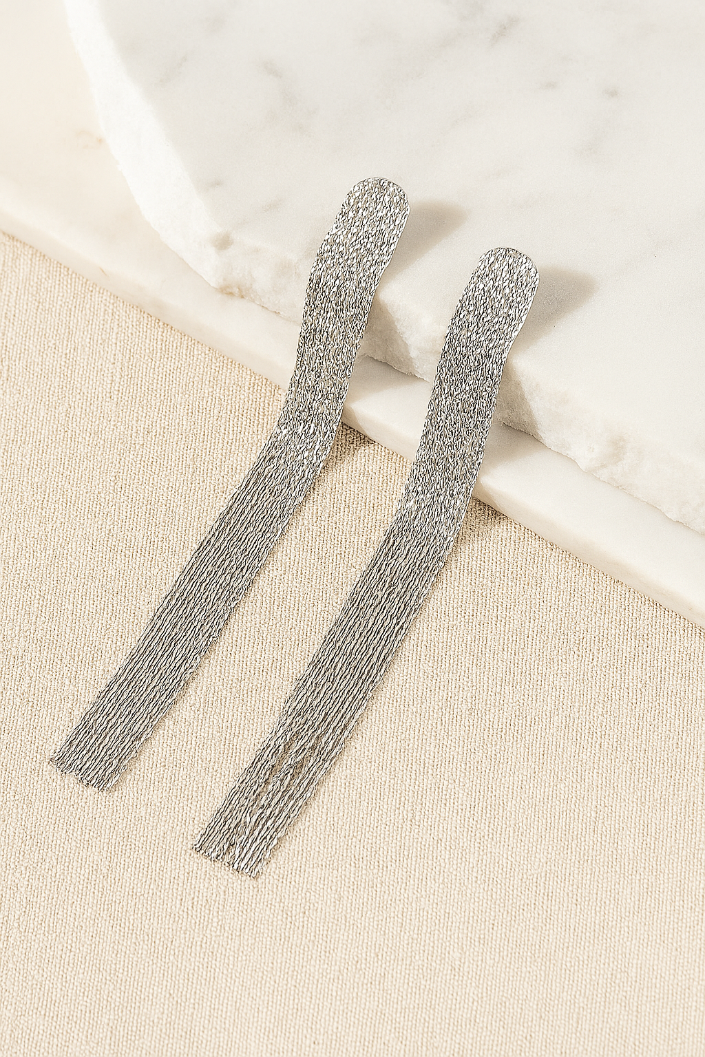 Designed to shimmer with every step, these chain fringe statement earrings bring effortless movement and edge. Crafted with cascading strands of polished silver-tone chains, they create a bold, fluid silhouette that’s made to stand out—whether styled with sleek tailoring or your favorite going-out look.
