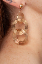 Be on trend this season with these Circular Tri Drop Earrings. Crafted in a 70s style with a unique drop shape, these earrings will be sure to make a statement. Make an effortless style statement and stand out from the crowd.