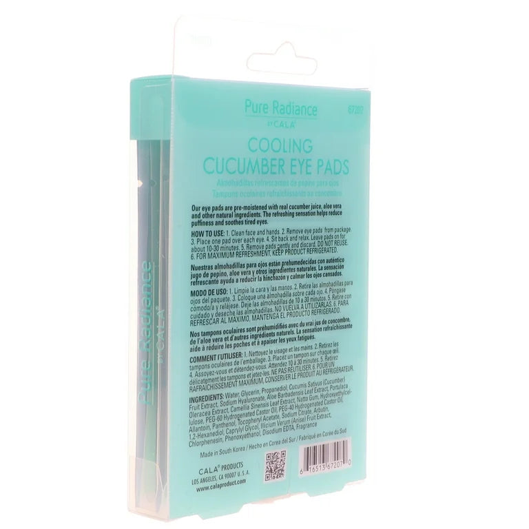 Cooling Cucumber Eye Pads provide relief and hydration to tired eyes. Each set contains 5 pairs of pads, that locks in moisture. The pads help to relax the eyes and reduce puffiness and dark circles. Soothing, refreshing, vitamin E