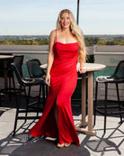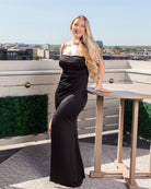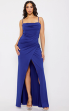 When simple meets elegant. Introducing our Cowl Neck Maxi Dress. A chic cowl neck + cowl back create an elegant silhouette, while a front slit adds a touch of sensuality. The stretchy fabric allows for a comfortable and flattering fit, and adjustable spaghetti straps add a delicate touch. Perfect for a glamorous evening out.