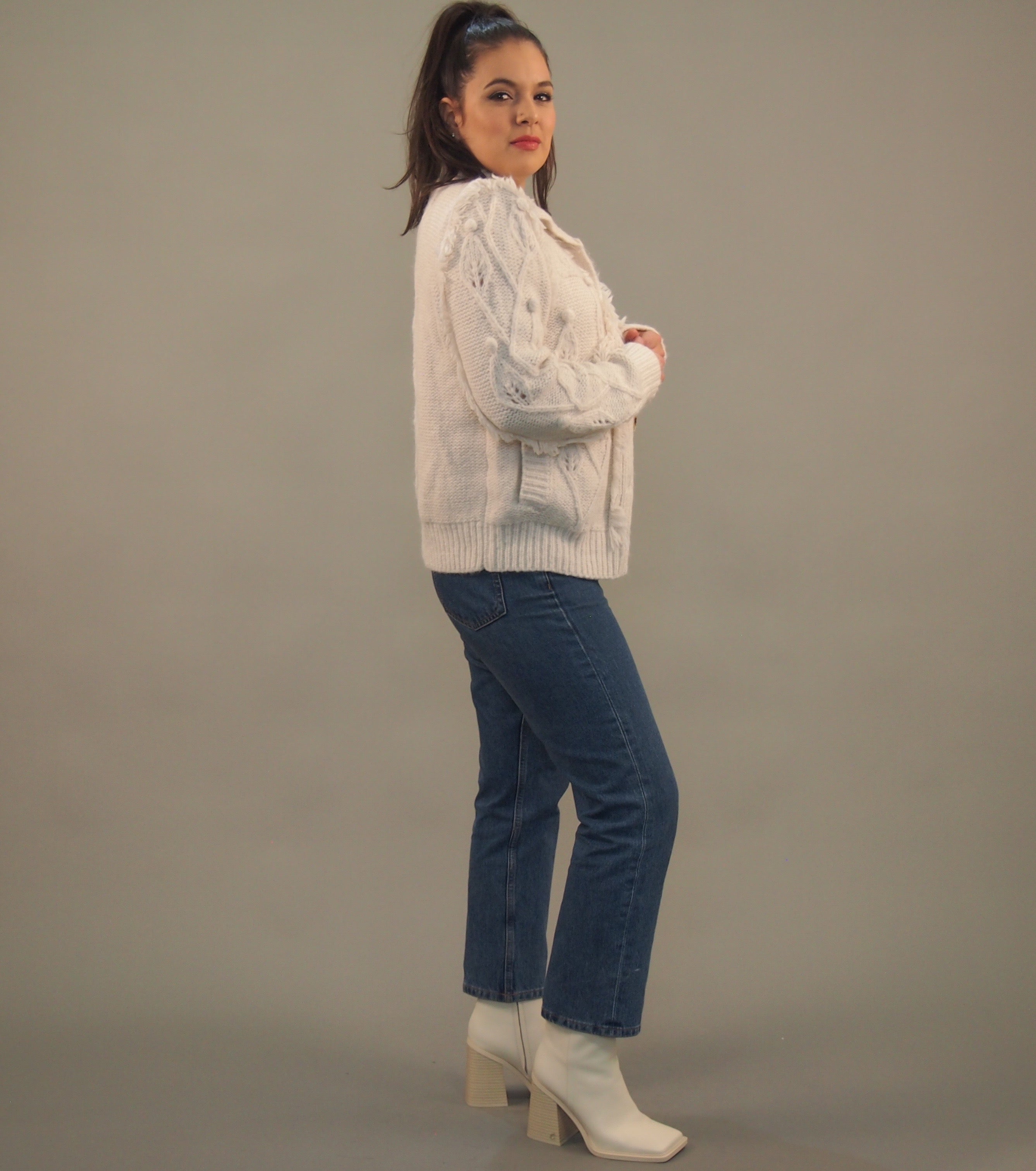 Stay cozy and stylish with the La Paz Wool Cardigan. This warm capsule sweater features a unique pom pom design and a button down closure to keep you comfortable all day. Perfect for chilly days, this cardigan is a must-have for any timeless wardrobe piece.