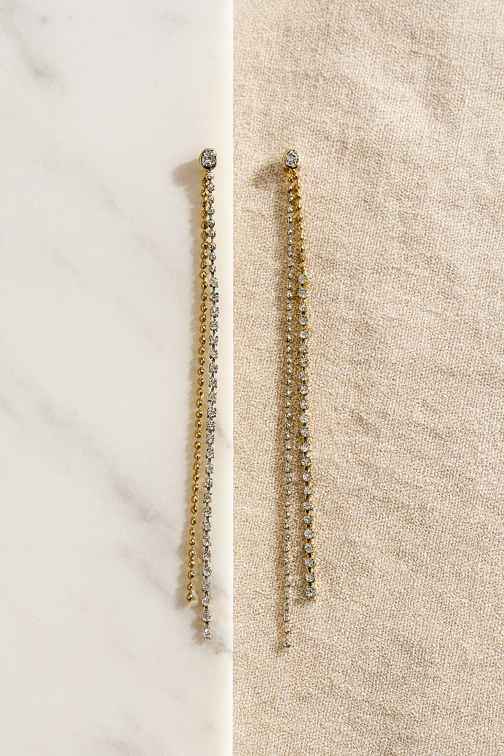 ✔ Dual crystal-strand drop with fluid drape