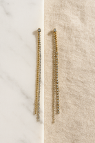 Delicate yet dynamic, these double strand pavé drop earrings feature two cascading chains of finely set crystals, anchored by a polished post-top. The subtle asymmetric drape and dual-strand construction create effortless movement and refined sparkle—designed for evening elegance or elevated minimalism.