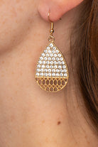 These Gold Thatched Rhinestone Drop Earrings are the perfect statement piece. Sparkling rhinestones are set in a sophisticated gold-toned pattern for a luxurious look. These drop earrings add a touch of glamour to any outfit.