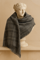 Classic meets cozy in this timeless black and white plaid scarf, woven with a sophisticated check pattern that elevates any ensemble. Crafted from a soft, plush fabric with a gentle drape, it’s generously sized for versatile styling—from a chic wrap to a bundled scarf. Finished with subtly frayed edges, this piece adds texture and polish to both casual and formal outfits, making it a must-have cold-weather essential.