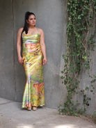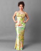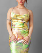 The Gosau lime marble chain slip maxi dress is the perfect style for any event. Featuring an elegant chain detail and airy lightweight fabric, it's perfect for vacations, weddings, and beach days alike. With its comfortable fit and modern design, you'll be sure to make a statement.