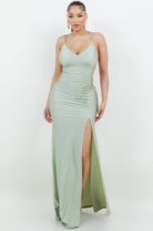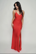 Lisbon Ruched Maxi Dress + Thigh Slit