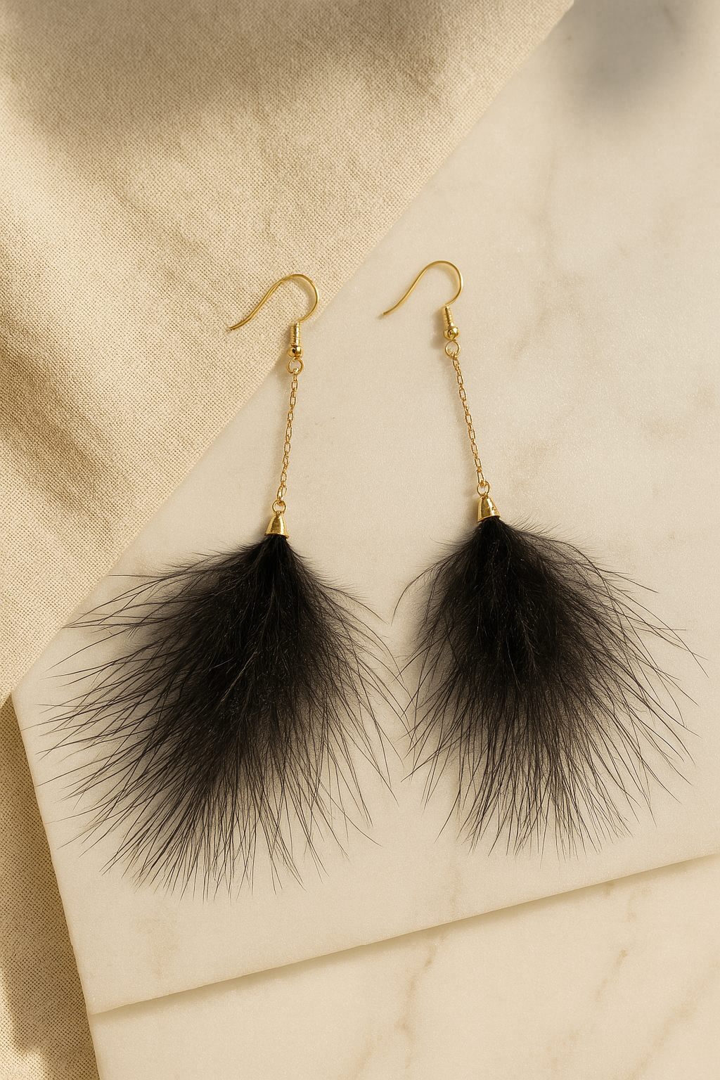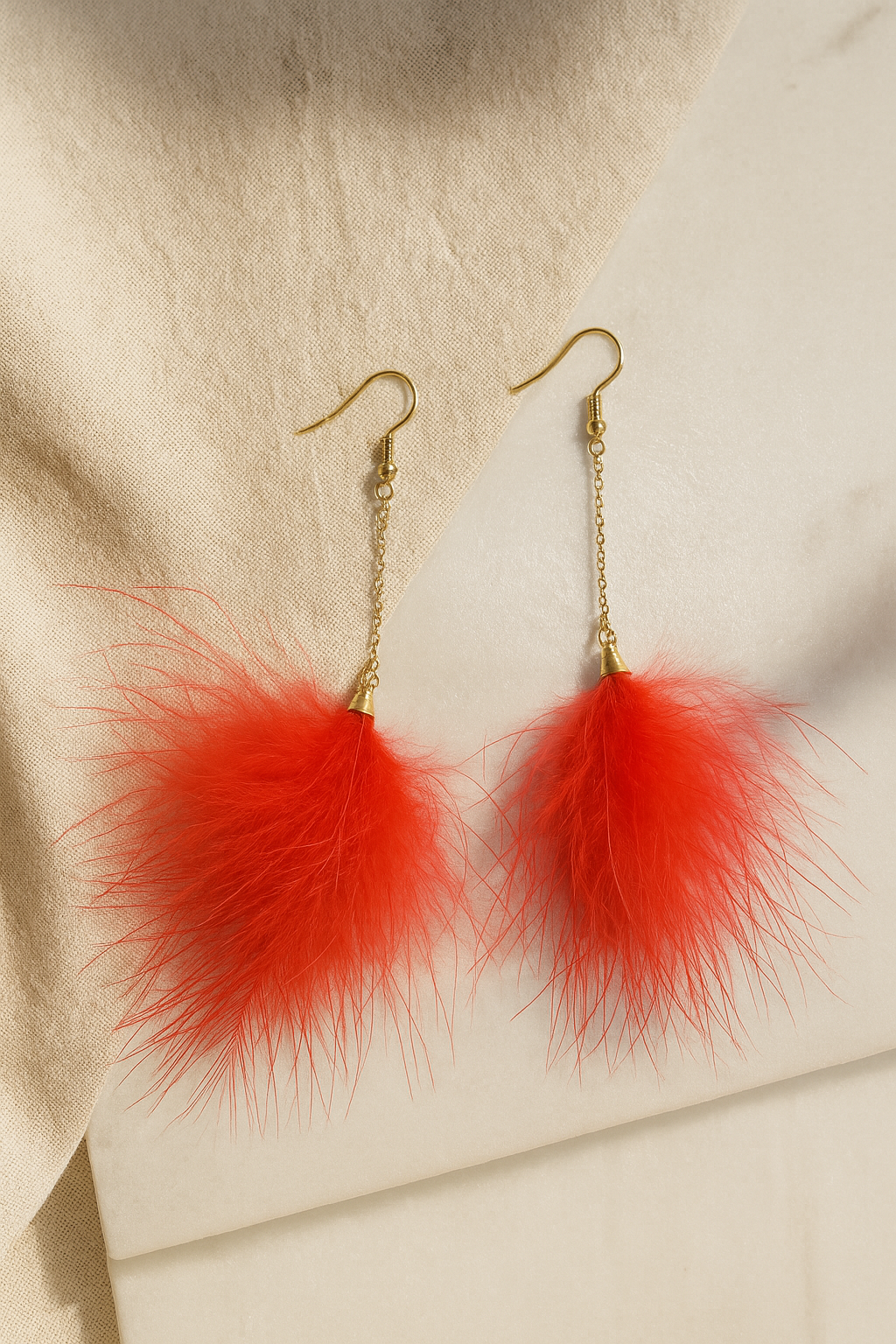 Turn heads with these dramatic Long Feather Drop Earrings, designed for bold self-expression and effortless style. Featuring luxuriously soft, fluffy feathers that sway with every move, these lightweight dangle earrings are finished with delicate gold-tone hooks and chains for a chic, eye-catching look.