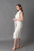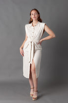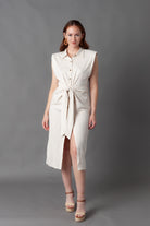 Madrid Tie Front Midi Button Down + Sleeveless Shoulder Pads