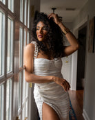 Resort wear game, here to meet your needs. Check out our Mexico City Textured Chain Body Suit + Skirt Set! This stretchy duo hugs your curves in all the right places, while the chic chain link strap design adds a touch of edgy elegance. The textured fabric adds a playful, yet sophisticated touch to this must-have vacation set.