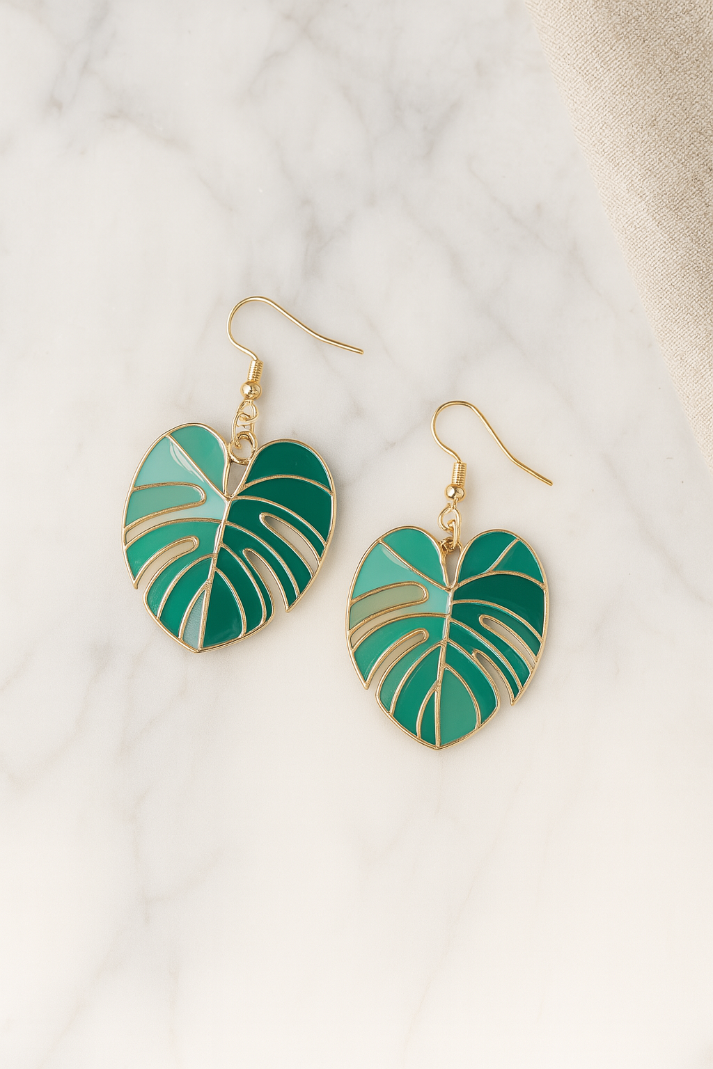 Channel island vibes with our Monstera Enamel Drop Earrings, featuring vibrant green enamel inlaid in a polished gold-tone monstera leaf silhouette. These lightweight earrings sway beautifully with every step, adding a playful pop of tropical charm to your look. Whether you’re dressing up a breezy sundress or adding a bold accent to your casual wear, these earrings are a must-have for lovers of color and statement accessories.
