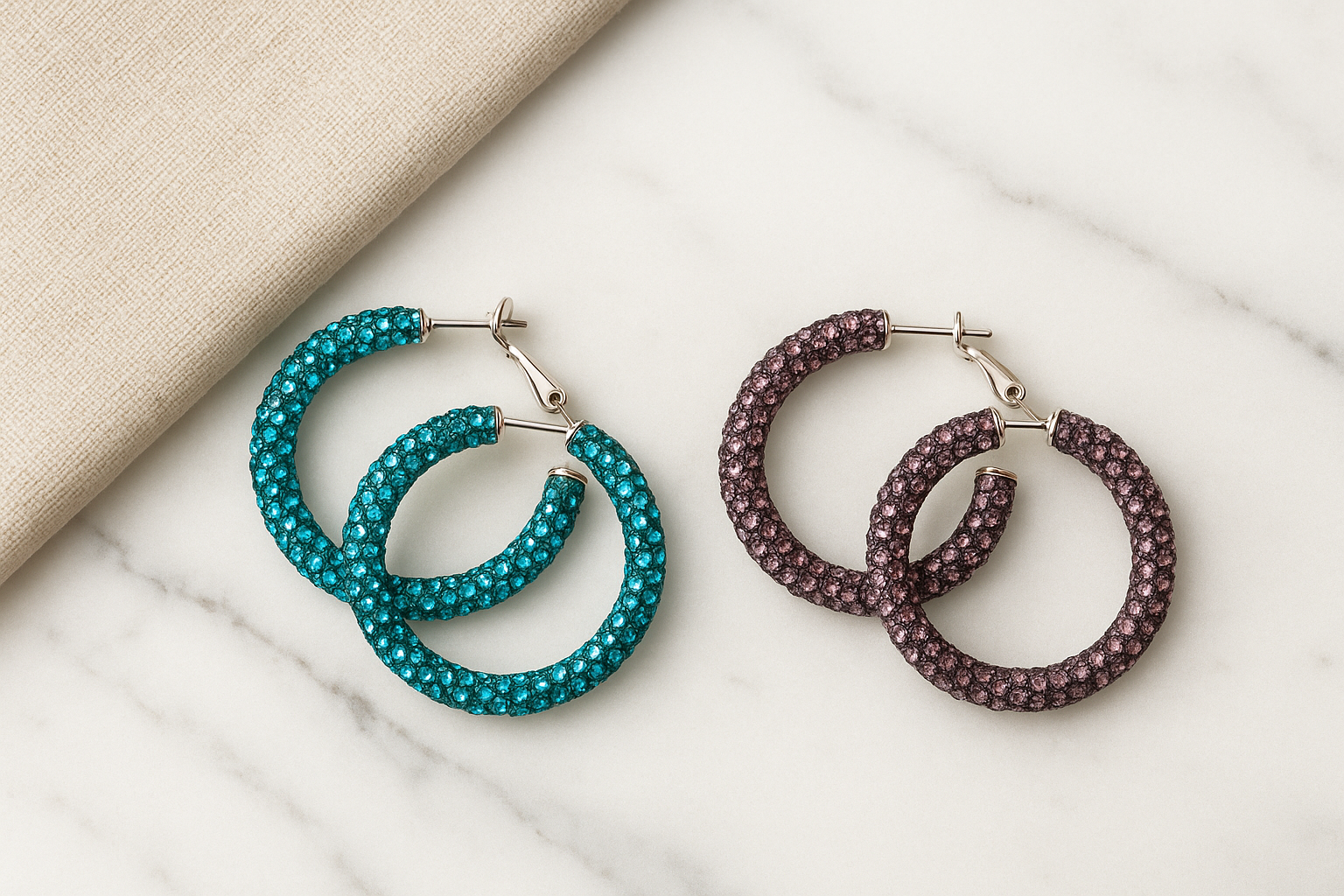 Add effortless sparkle to any look with these Rhinestone Hoop Earrings. Designed with rows of glimmering rhinestones wrapped around bold hoops, these earrings deliver timeless shine perfect for day or night. A secure latch-back closure ensures comfortable, reliable wear every time.
