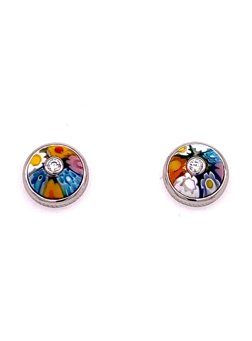 MURANO MILLEFIORI MULTI COLOR ROUND GLASS STUD EARRINGS.