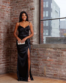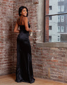 Our Paris floor sweeping gorgeous silky maxi dress is perfect for your next black tie event. If you're a person who appreciates simplicity this dress is a knock out. It has just the right details to stand out. It photographs perfectly and is easy to style with accessories. Most women love this dress for weddings, bridal parties, black tie events and galas.