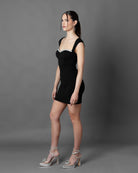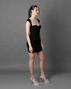 Indulge in luxury with our Madrid Square Neck Black Mini Dress. The chic design and rhinestone bust make a statement at any event or cocktail party. Be on the receiving end of a ton of compliments in this elegant and exclusive piece.
