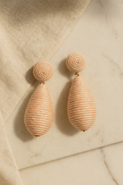 Elevate your look with these Rattan Wrapped Teardrop Earrings, crafted with natural-inspired textured cord that brings artisanal charm to your accessories. Featuring a spiral stud top and an elongated teardrop shape, these lightweight statement earrings add earthy sophistication to any outfit—from casual denim to breezy resort wear.