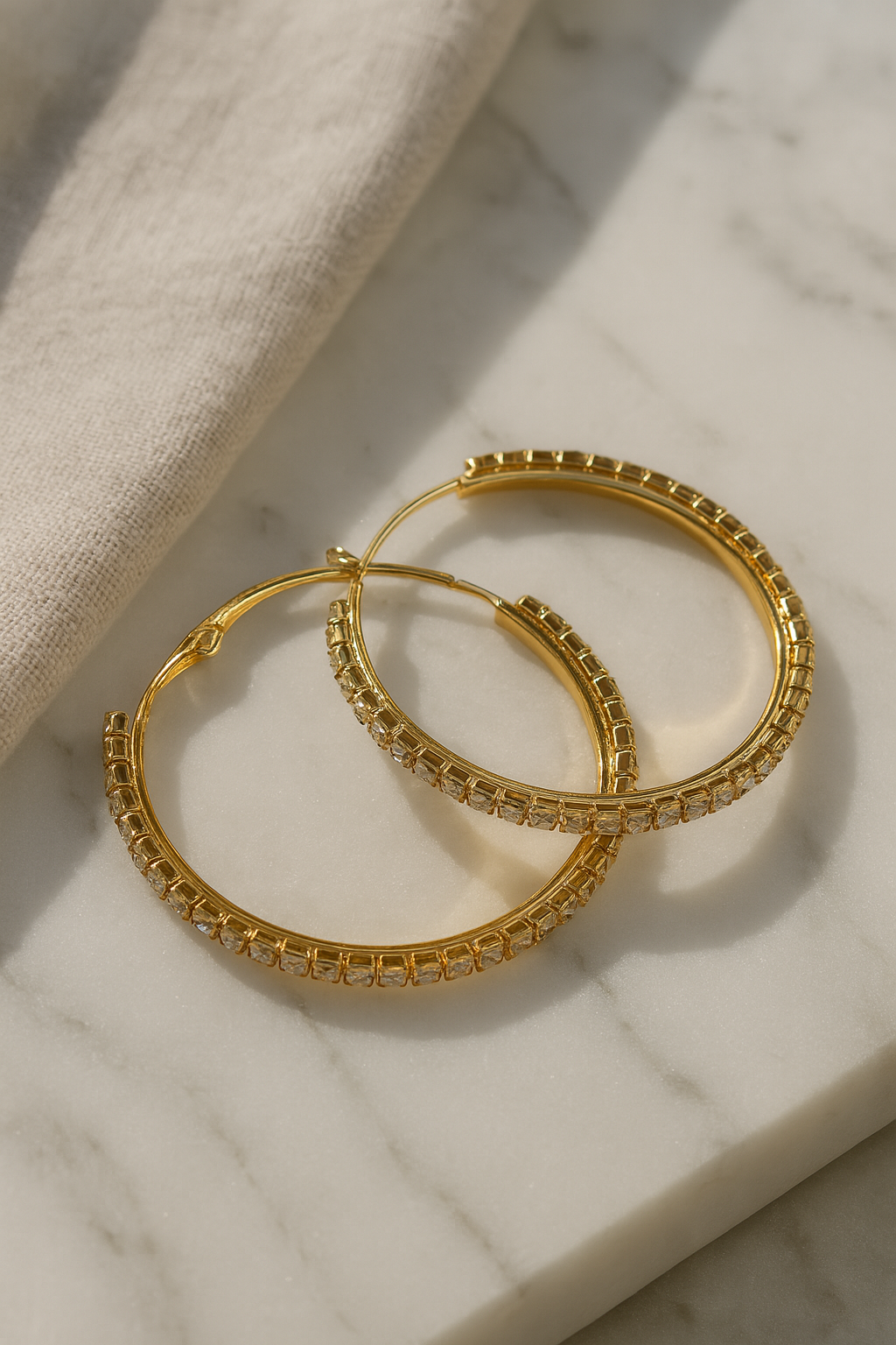 Rhinestone Hoop Earrings – Classic Click-Top Sparkle Hoops