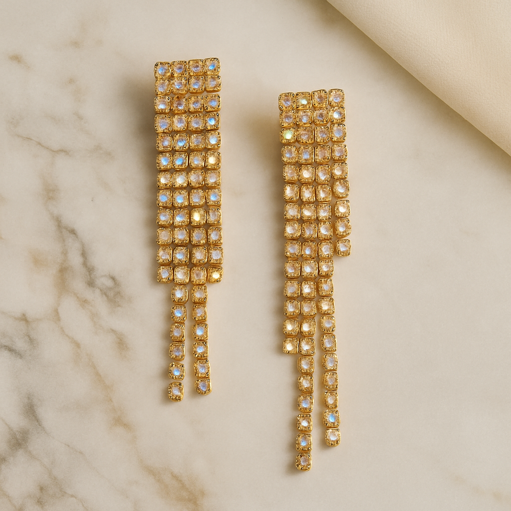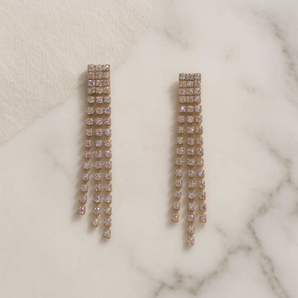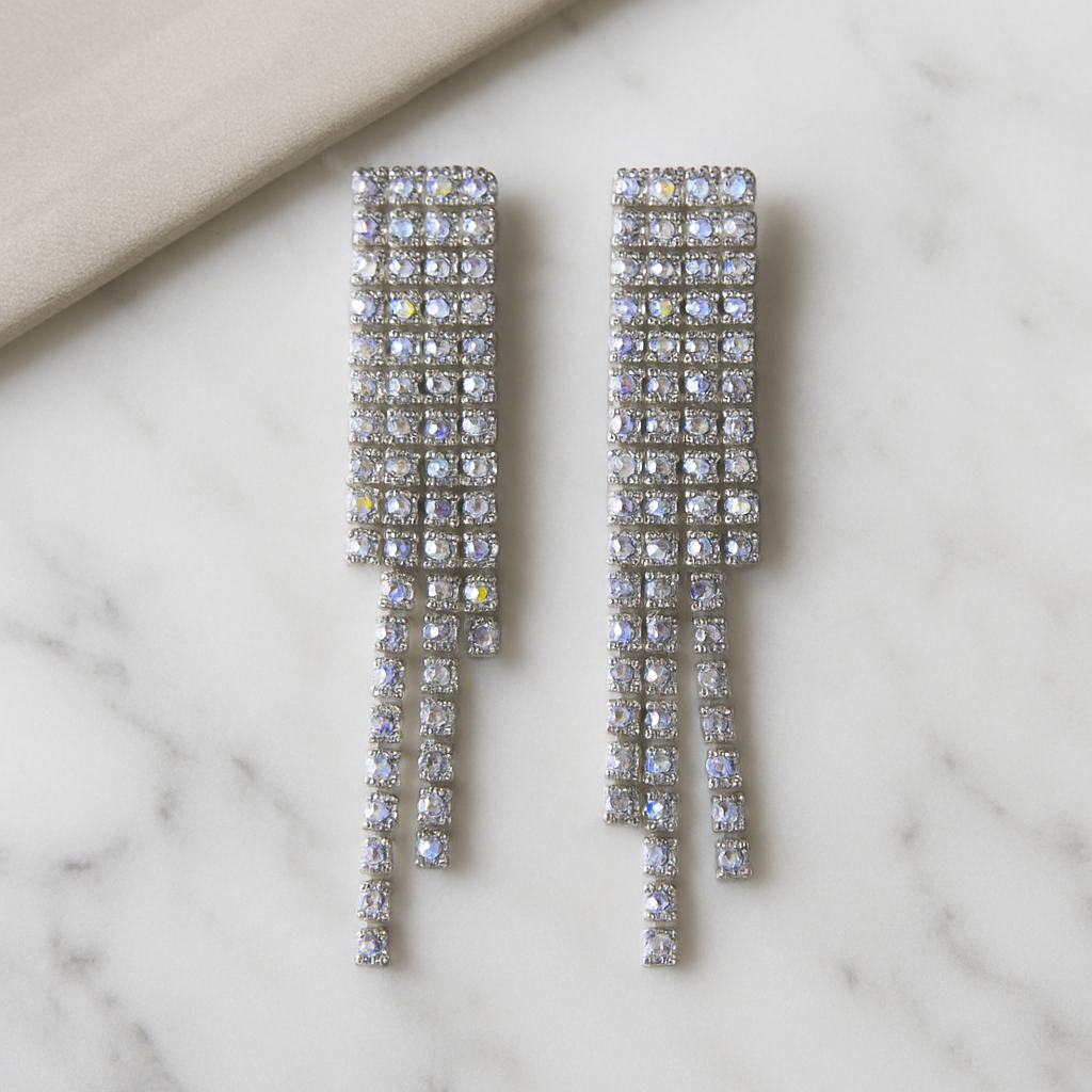 Rhinestone Waterfall Earrings – Short Statement Fringe