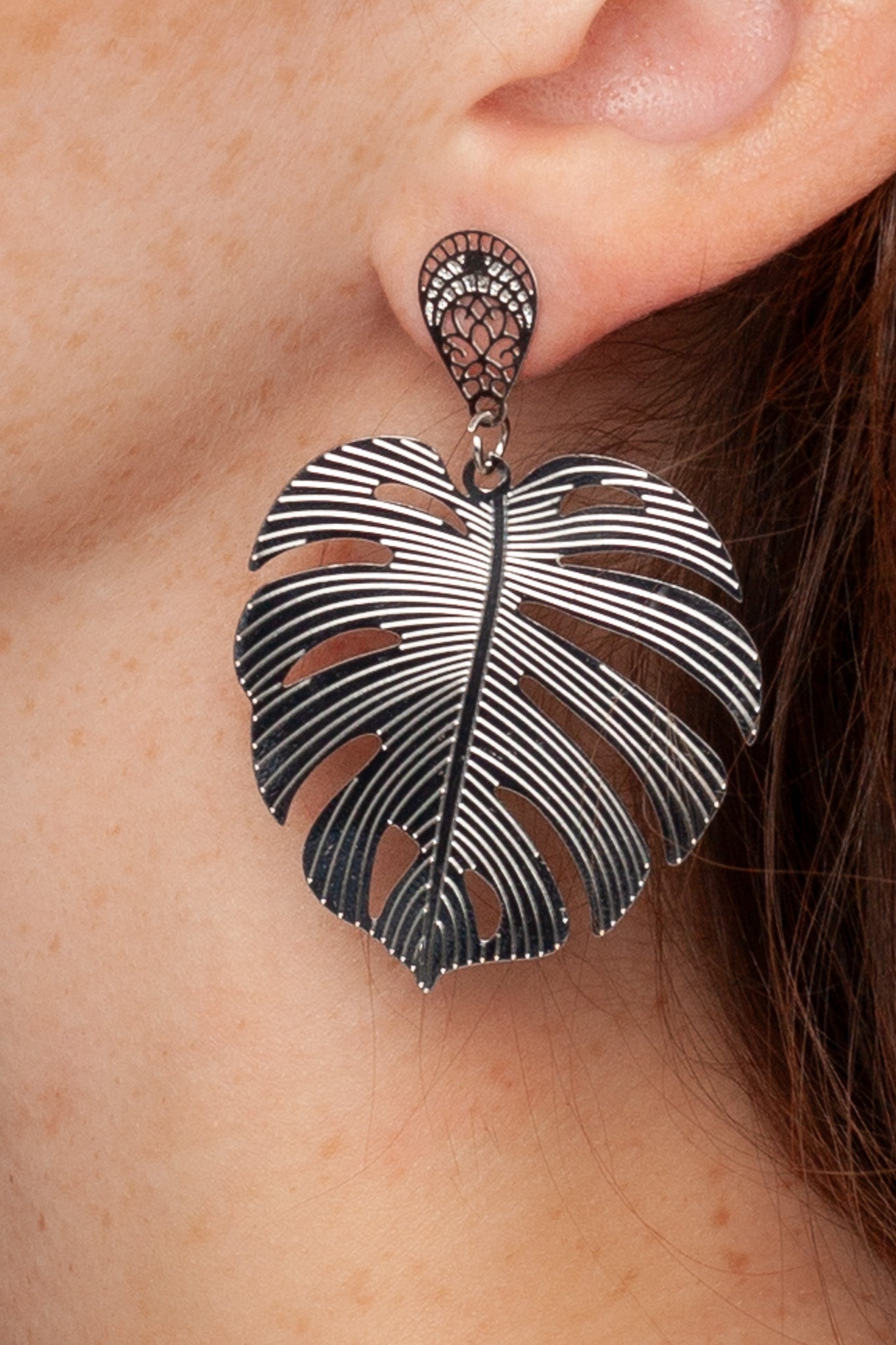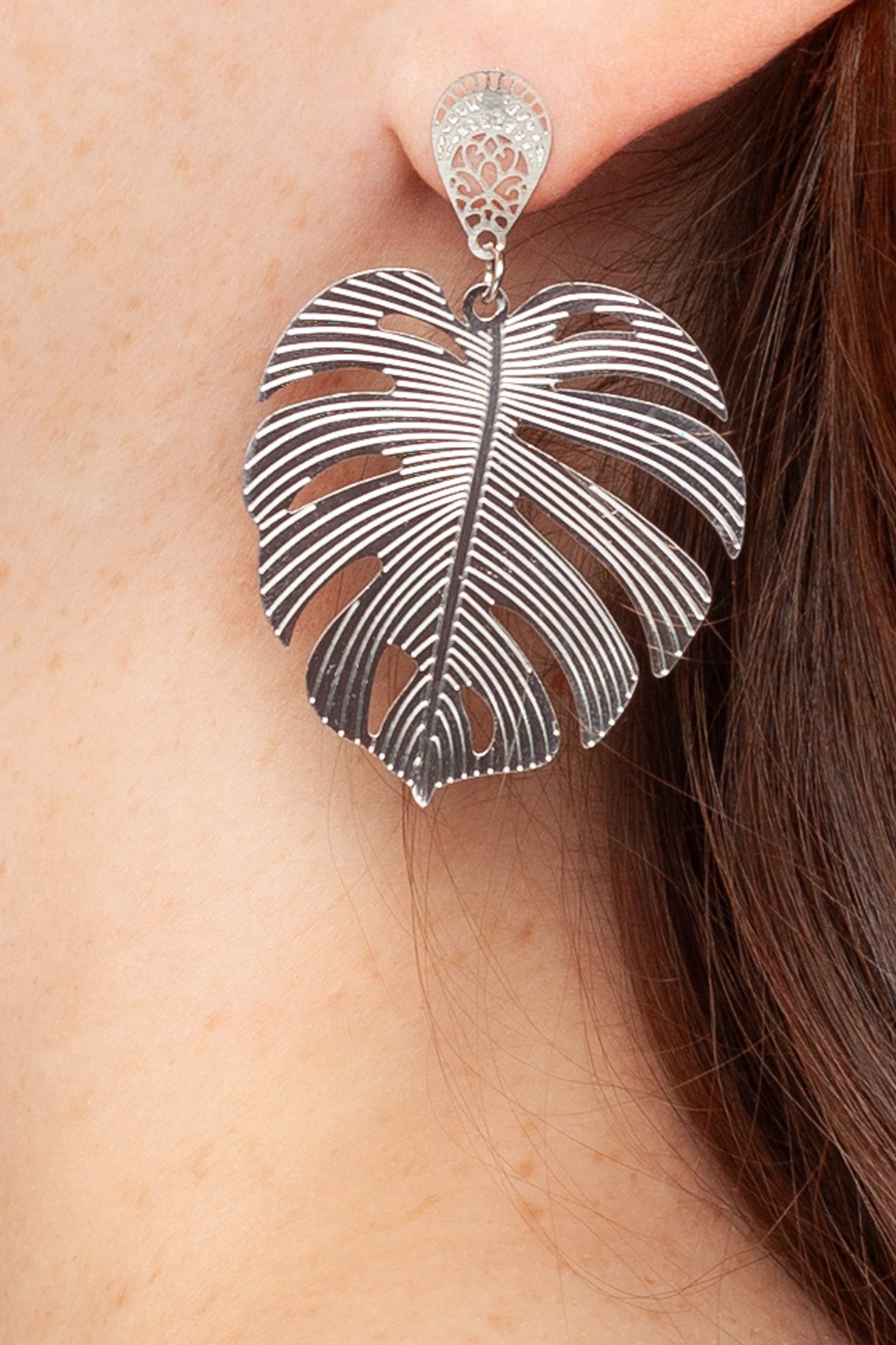 Enhance your vacation style with these elegant Silver Monstera Leaf Drop Earrings. Crafted with intricate detail, these earrings feature a stunning monstera leaf design that adds a touch of nature to any vacation outfit. Perfect for any destination, these earrings are the must-have accessory for your next adventure.