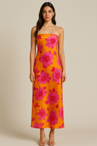 Floral Strapless Silky Maxi Dress + Side Slit