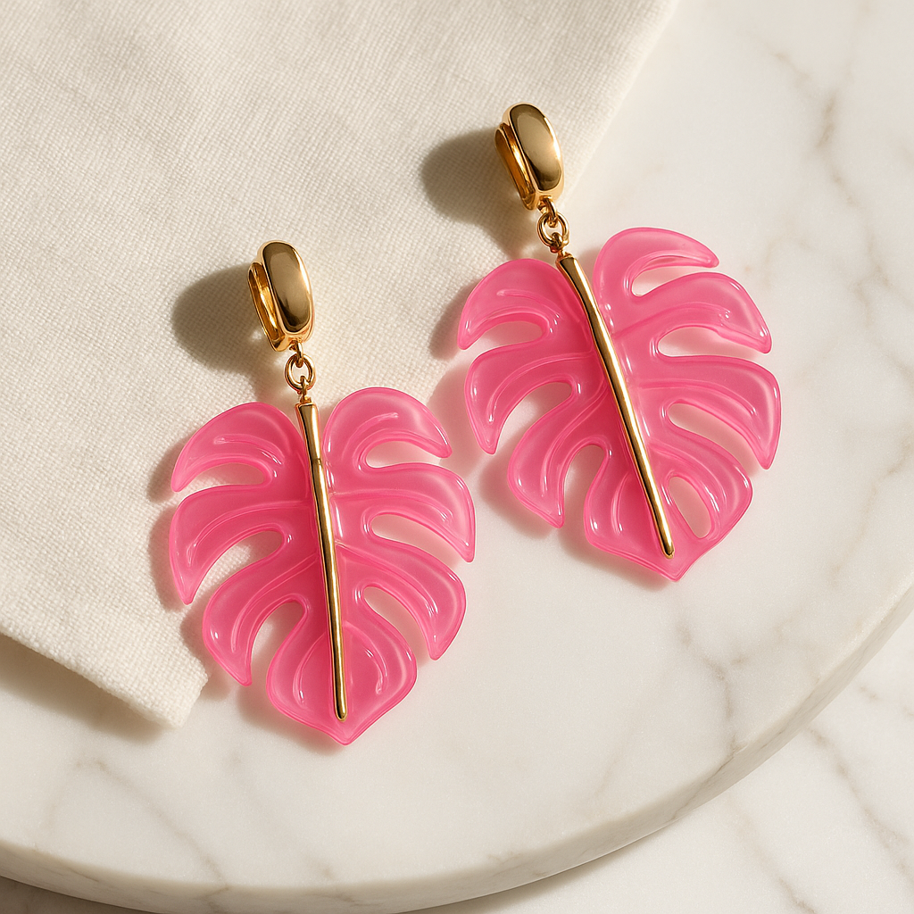 Bring the spirit of the tropics to your style with these Tropical Monstera Leaf Drop Earrings. Featuring oversized acrylic monstera leaves suspended from sleek gold-tone studs, these statement earrings deliver a playful yet polished vibe perfect for summer getaways, resort looks, or adding a pop of fun to any outfit.